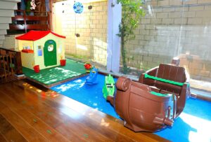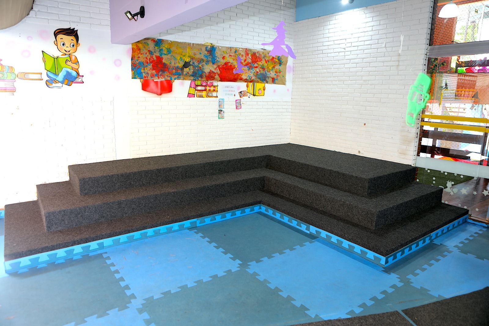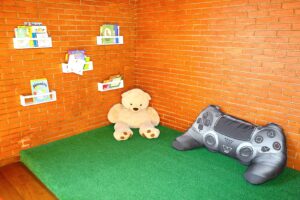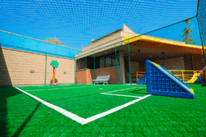 Trata-se de um espaço ideal para oferecer atividades que desenvolvam as habilidades motoras e espaciais: circuitos com pneus, cones e bambolês; brincadeiras de correr, pular e saltar. O estímulo, sempre de acordo com a faixa etária, tem uma grande influência no desenvolvimento da criança em relação a si mesma e ao espaço em que está inserida. O corpo e o movimento ocupam um lugar importante na vida dos pequenos, pois é se movimentando que eles têm acesso ao mundo dos objetos e ao mundo que os cerca.